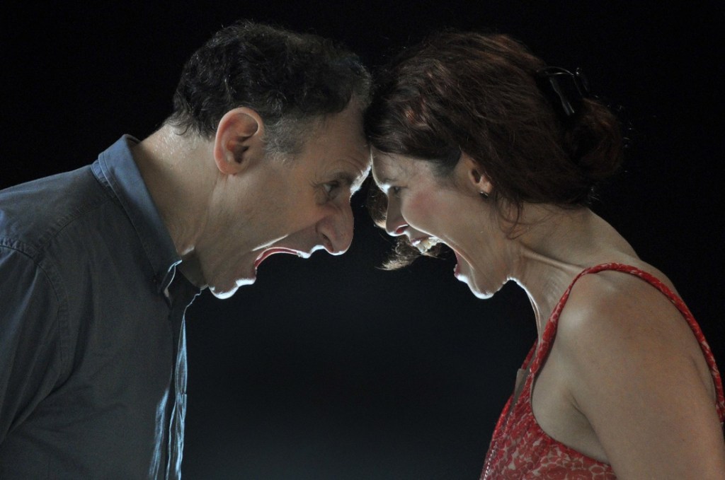 Des mots contre les maux conjugaux, c’est mieux que les blessures morales et physiques. Alors, nous avons assisté à une succession de scènes de ménage. De toutes les époques et de tous les style, aucun lien ne les unit les unes aux autres sinon des changements a vue de costumes interminables qui n’apportent rien ni au jeu des comédiens, ni à l’esthétique scénique. Le choix d’un accessoire emblématique aurait suffit pour installer une ambiance, distinguer un personnage… et éviter tant de cassures qui ont nuit au rythme. Nous aurions aimé plus de fluidité, que les mots de ces extraits s’entrechoquent entre eux, s’embrasent et se bousculent pour mieux nous embraser et nous bousculer à notre tour… Mais ces remue-ménages conjugaux n’ont provoqué en nous ni emportement, ni exaltation.
