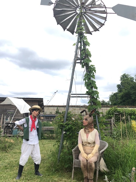 Délicieuse déambulation, donc, dans les méandres du potager, ponctuée par les cris d’enthousiasme des enfants (« Ouiiiii, en avant ! »). Pour ma part, entre les deux parcours proposés, j’ai opté pour la Promenade des loups, qui proposait une dizaine de fables connues (« Le Loup et l’Agneau », « Le Chêne et le Roseau », « Le Lièvre et la Tortue »……) et moins connues (« L’Oiseau blessé d’une flèche », « Le Loup et le Chien »). À chaque point du parcours, le public découvre un ou une comédienne qui va lui jouer plusieurs fables, et qui, une fois son récit terminé, le conduira jusqu’au point suivant.