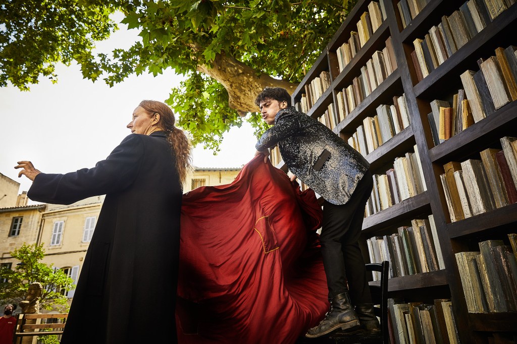 Grand admirateur d’Hamlet, Olivier Py est un très fin connaisseur des commentaires et analyses qui ont traversé les époques sur l’œuvre de Shakespeare. On reste d’ailleurs médusé devant sa connaissance et à son érudition en la matière. Et la force de ce spectacle en est aussi peut-être le point faible : le texte est dense, passionnant mais s’enchaîne si rapidement que le temps nous manque parfois pour l’accueillir, le comprendre et l’assimiler. Mais qu’importe, la mise en scène vive, fraîche, tourbillonnante et le charme opère indéniablement dans cette cour superbe aux oliviers centenaires…On applaudit chaleureusement devant cette création ultra séduisante.