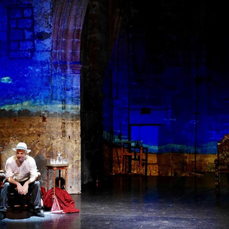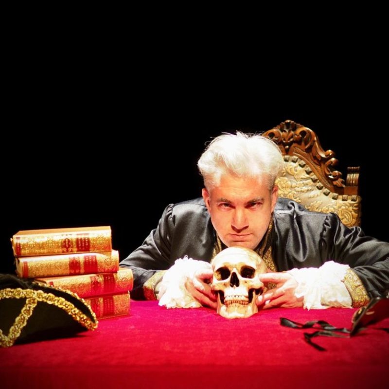 Écrit, conçu et interprété par Stephan Caso, To be or not to be Avignon enchaîne en une vingtaine de tableaux une multitude d’histoires. Et c’est toute la Cité qui défile avec ses grands noms et ses petites gens sur 2000 ans en 90 minutes seulement. Plus cabinet de curiosité et galerie de portraits que récit historique – impossible d’être exhaustif et de ne pas emprunter de raccourcis vu le temps accordé – le spectacle rend hommage à la folie des hommes, flattant leur vanité et leur génie fugace.