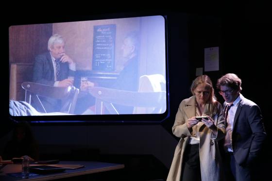 Sur l’écran en fond de scène, nous pouvons suivre en direct le contenu du site Internet du journal, avec les dernières informations publiées et les enquêtes en cours. Face à cette situation inédite, l’unité de la rédaction va voler en éclats. Différentes conceptions du journalisme s’affrontent autour d’Éric, le rédacteur en chef (Yann Reuzeau, également auteur et metteur en scène) et de sa fidèle adjointe Catherine (Sophie Vonlanthen), pour qui c’est l’occasion inespérée de prendre le pouvoir.