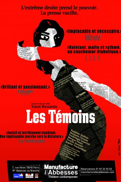 ♥♥♥ C’est un véritable coup de poing que nous envoie Yann Reuzeau avec son dernier opus théâtral. Nous voici plongés au cœur de l’actualité, dans la salle de rédaction du journal Les Témoins, qui a bâti jusqu’à présent sa réputation sur son impartialité. Une nouvelle vient de tomber, qui fait froid dans le dos : l’élection d’un président de la République d’extrême droite.