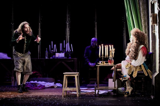 A la manière d’une fable baroque et colorée, la co-autrice et metteuse en scène Louise Vignaud offre une pièce éminemment intéressante sur la relation ambivalente des artistes au pouvoir, entre protection et censure. La scénographie à la fois simple, habile et fluide nous fait voyager à travers les époques, du théâtre de Moscou des années 1930 aux scènes de la cour de Versailles, et mêle la Grande et la petite histoire en privilégiant un portrait plus intimiste des protagonistes. Au coeur d’une troupe totalement investie, Pierre Louis-Calixte campe un Bougalkov bouillonnant, excessif et désespéré tandis Nicolas Chupin (déjà applaudi dans Féminines), dans son premier rôle à à la Comedie-Française, et dirigé à la perfection, force l’admiration avec son Molière acariâtre, tyrannique, tiraillé et terriblement humain dans ses succès ou ses errances. Un grand moment de théâtre.