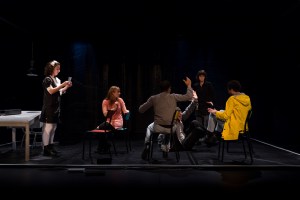 La compagnie Ce soir-là, c’était la neige propose une adaptation théâtrale du roman éponyme d’Howard Buten. Barthélémy Fortier à la mise en scène en donne plein les yeux et les oreilles, autant à voir qu’à entendre. Que d’installations et d’accessoires ! Que d’effets sonores et d’intermèdes instrumentaux (je suis encore à m’interroger sur les intentions recherchées pour glisser des solos de batterie, des chansons… et même du Claude François) ! Que d’expressions corporelles et de changements à vue ! Et chacun leur tour, les comédiens enfilent le rôle de Gil, les comédiennes le rôle de Jessica. Trop d’information tue l’information. Il en est de même pour les effets. Si leur abondance peut plaire à certains, nous, elle nous a perdus quelquefois en chemin. À voir pour la qualité d’interprétation des comédiens et quelques bonnes idées de mise en scène.
