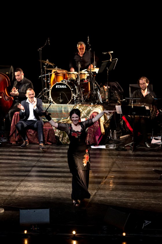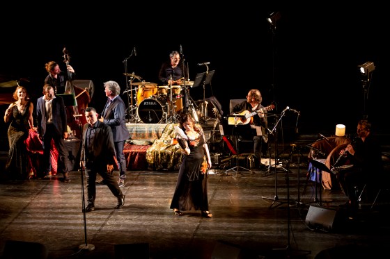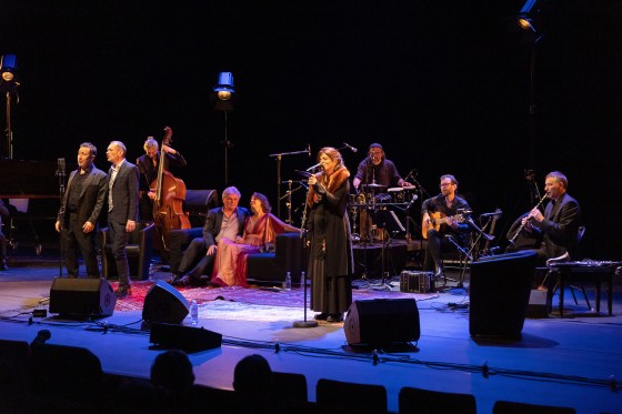 ♥♥♥♥ Généreux, joyeux, chaleureux, mélancolique, nostalgique, éclectique, flamboyant, réconfortant, festif… les adjectifs ne manquent pas pour qualifier le spectacle d’Agnès Jaoui et de sa « bande » : l’ensemble Canto Allegre pour le chant et l’orchestre Carabanchel, dirigé par le musicien et compositeur argentin Fernando Fiszbein. Comme l’indique le titre, on a l’impression d’être convié chez la réalisatrice et actrice avec ses amis. Car c’est bien d’amis dont il s’agit ici, réunis par leur amour de la musique, et cette complicité indéniable rend le moment encore plus agréable pour nous, spectateurs.