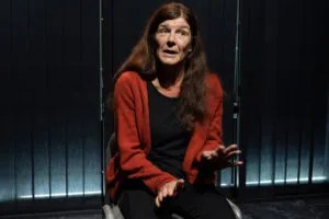 Quant à la mise en scène de l’autrice, elle est si minimaliste et surtout si réaliste que l’on se croirait être dans les locaux des œuvres sociales à l’enfance. Le décor confirme cette impression : un mur de placards en fond, une moquette gris souris, une fontaine à eau, une chaise de visiteur. Le jeu d’acteur est si naturel qu’il ajoute plus de véracité à l’ensemble.
