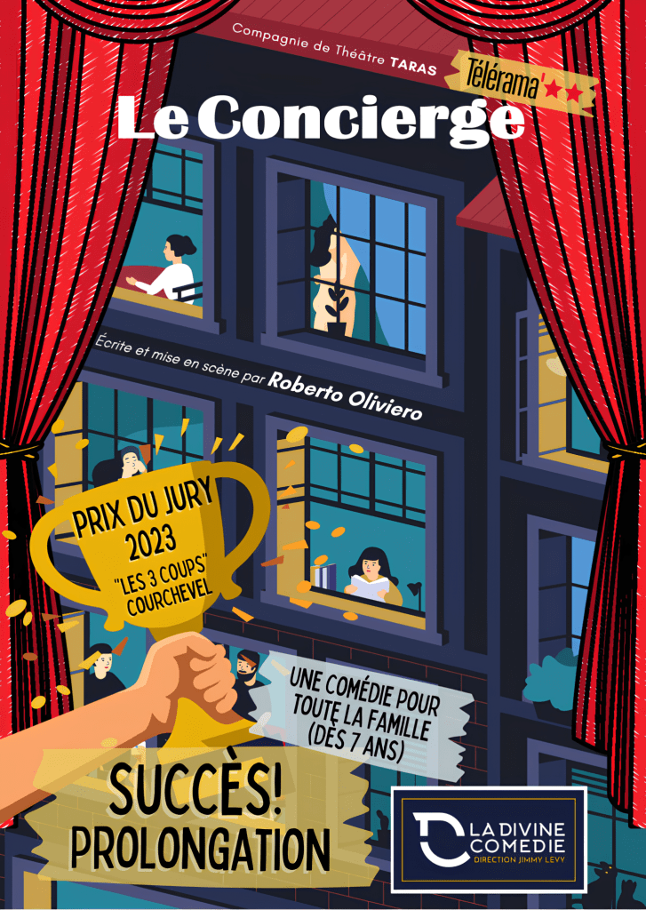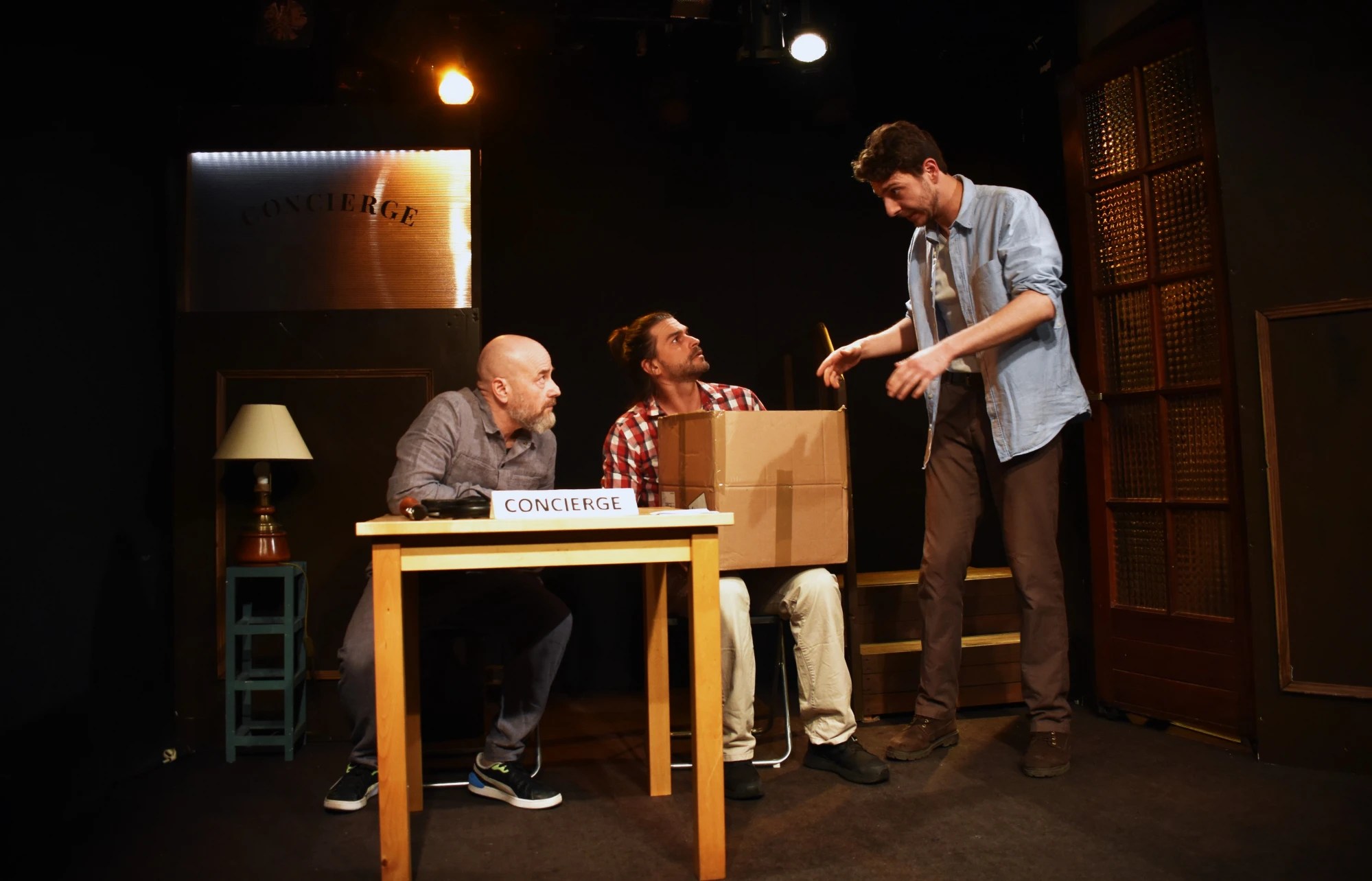 Le Concierge, écrite et mise en scène par Roberto Oliviero, est présentée comme une comédie promettant quiproquos et rebondissements, humour et émotion, le tout sans temps mort. N’est-ce pas l’apanage de toute comédie ?