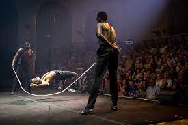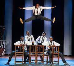 Sur toile de fond de la bande-son du film culte The Blues Brothers, s’enchaînent sauts périlleux, pyramides humaines et cascades de feu. Des acrobaties à couper le souffle. Le public reste bouche bée devant les incroyables performances athlétiques parsemées d’un humour jovial. La scène semble trop limitée pour accueillir leur talent. Pas d’intrigue à proprement parler. Chaque scène prenant pour prétexte un objet, une mimique, une attitude et les cinq artistes acrobates virevoltent en tous sens sur le sol comme dans les airs. Le public applaudit à tout rompre devant tant de dextérité. The Black Blues Brothers, un spectacle musical tout public.