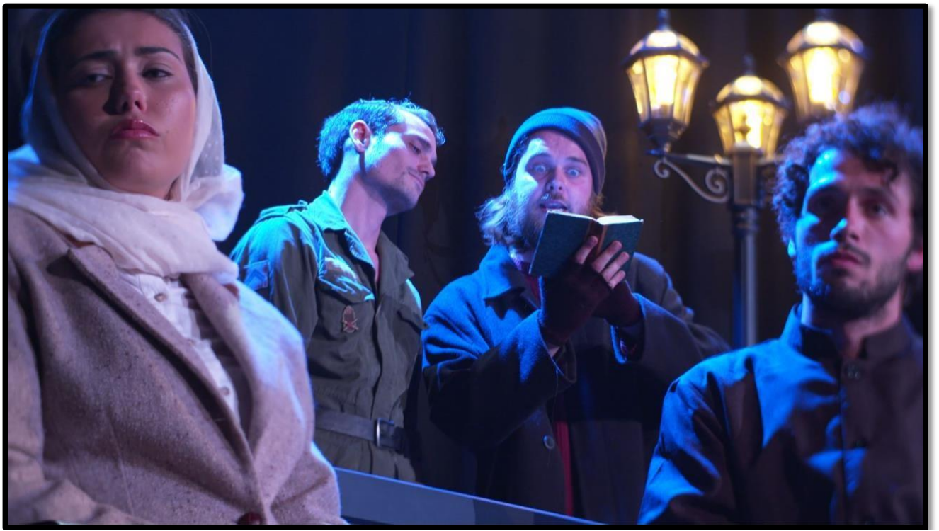 Le texte de Paul Duvaux et Simon Guillemot tient en haleine le public d’un bout à l’autre et le fait réfléchir sur la culpabilité des choix de vie et la fragilité de l’humanité. La mise en scène de Célia Kourt est forte, efficace, percutante. Le jeu des comédien-ne-s – Arthur Barral, Gauthier Germain, Paul Duvaux, Marie Iasci, Sara Syr, Valentin Guilbot et Simon Guillemot – est touchant, bouleversant. Chaque personnage dévoile son regard sur cette guerre sanglante qui a duré plus de huit années. S’entremêlent regrets et souffrances, rencontres et jugements. À chacun sa vérité, son point de vue. Le tout vous embarque dans l’Histoire et les inévitables conséquences de tout conflit armé, qu’il soit hier ou aujourd’hui. Et les cinq dernières minutes nous dévoilent enfin que dans les trains au départ de cette gare embarquent des personnes décédées pour un ailleurs. Paradis, Enfer ou Purgatoire ?