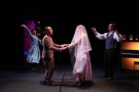 Les quatre sœurs March, adaptation théâtrale d’Armance Galpin et Aurélien Houver de l’un des plus célèbres romans de la littérature américaine Les quatre filles du docteur March, reste fidèle à l’œuvre originale de Louisa May Alcott et à son adaptation cinématographique. S’y mêlent les rires et les larmes de la vie. Les comédien(ne)s de la compagnie Le Hasard du Paon – Armance Galpin ou Joséphine Thoby ; Clémentine Lebocey ou Solène Cornu ; Charlotte Lequesne ; Juliette Malfray ou Victoria Ribeiro ; Alexandre Schreiber ; Guillaume Tagnati – endossent plusieurs personnages avec brio. Leur jeu fait la part belle du spectacle. Quant à la mise en scène, elle tourne autour de trois colonnes mobiles lumineuses aux décors différents sur chaque face. Leur déplacement lasse au fil des scènes car il n’apporte rien à la narration de l’intrigue. Les ponctuations musicales font voyager l’imaginaire des spectateurs vers une autre époque.
