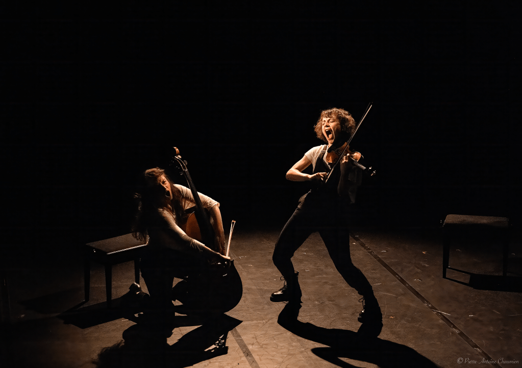 ♥♥♥ Un violon, un violoncelle. Deux jeunes femmes, deux voix, deux instruments. Elles sont musiciennes, ont grandi avec, dans et pour la musique. Elles se racontent, rejouent leur naissance à la musique, leurs premières émotions sonores, écartelées entre deux pôles : d’un côté la joie infinie de toucher du doigt la musique, la beauté des notes, et de l’autre, la violence pédagogique, les dégâts causés par cette enfance à côté du monde.