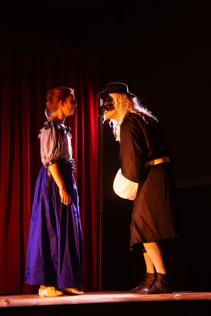 Costumes d’époque outrés, masques de cuir et métamorphoses d’acteurs sont de mise dans ce spectacle entraîné à vive allure par la fougue de la jeune compagnie de théâtre itinérante Les Allumeurs de Réverbères, spécialisée dans les spectacles en plein air, joués sur des tréteaux de bois, comme à l’époque de Molière.