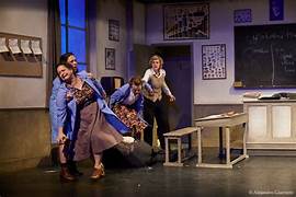 Le décor de Caroline Mexme et les costumes de Christine Vilers nous plongent dans les années 1940 en soignant les moindres détails. Le texte de Pierre-Olivier Scotto et Xavier Lemaire allie la grande Histoire à celle des petites gens avec des pointes d’humour, oppose le profane au sacré sans oublier de donner quelques claques à l’humanité. Anne Richard, Isabelle Andréani, Emilie Chevrillon, Fanny Lucet, Michel Laliberté et Dominique Thomas sont excellents même si leurs différents personnages sont quelque peu stéréotypés dans leur mode de pensée dans la France du régime de Vichy. Néanmoins, l’intrigue est hyperréaliste, du moins jusqu’à l’entrée de l’inspecteur d’Académie. Quant à la chute, elle laisse dubitative.