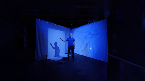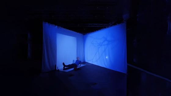 Dans un décor minimaliste réduit à deux panneaux blancs, ouverts comme un livre, sur lesquels viennent se refléter des ombres délicates, Oliver Ruidavet donne corps au beau texte de Pépin, au propre comme au figuré. Lorsqu’après de longues minutes d’attente, replié sur lui-même, il commence à s’animer, se métamorphoser, il est méconnaissable. Comme mû par une force invisible, qui le dépasse : « cette chose qui monte dans le ventre et même dans la gorge, et qui parfois surgit quand je ne m’y attends pas. Je crois que c’est de la joie. »