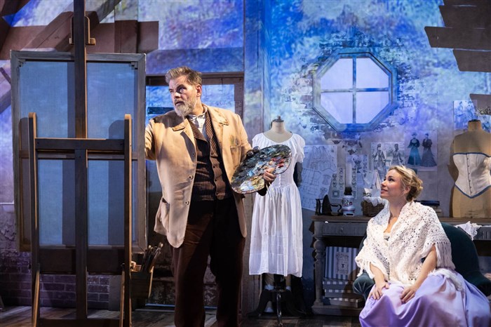 Les costumes sont éblouissants de justesse et d’une grande vérité comme le décor sublimé par les jeux de lumière. Le tout est majestueux, grandiose. La mise en scène intimiste de Tristan Petitgirard est tout en subtilité. Elle transcende l’émotion de la création et des sentiments pour mieux façonner une ode à la beauté de l’art de la peinture et des âmes humaines. L’exposition finale des tableaux de la cathédrale et la projection des œuvres sont d’une grande beauté. D’un bout à l’autre, la scène est lumineuse.