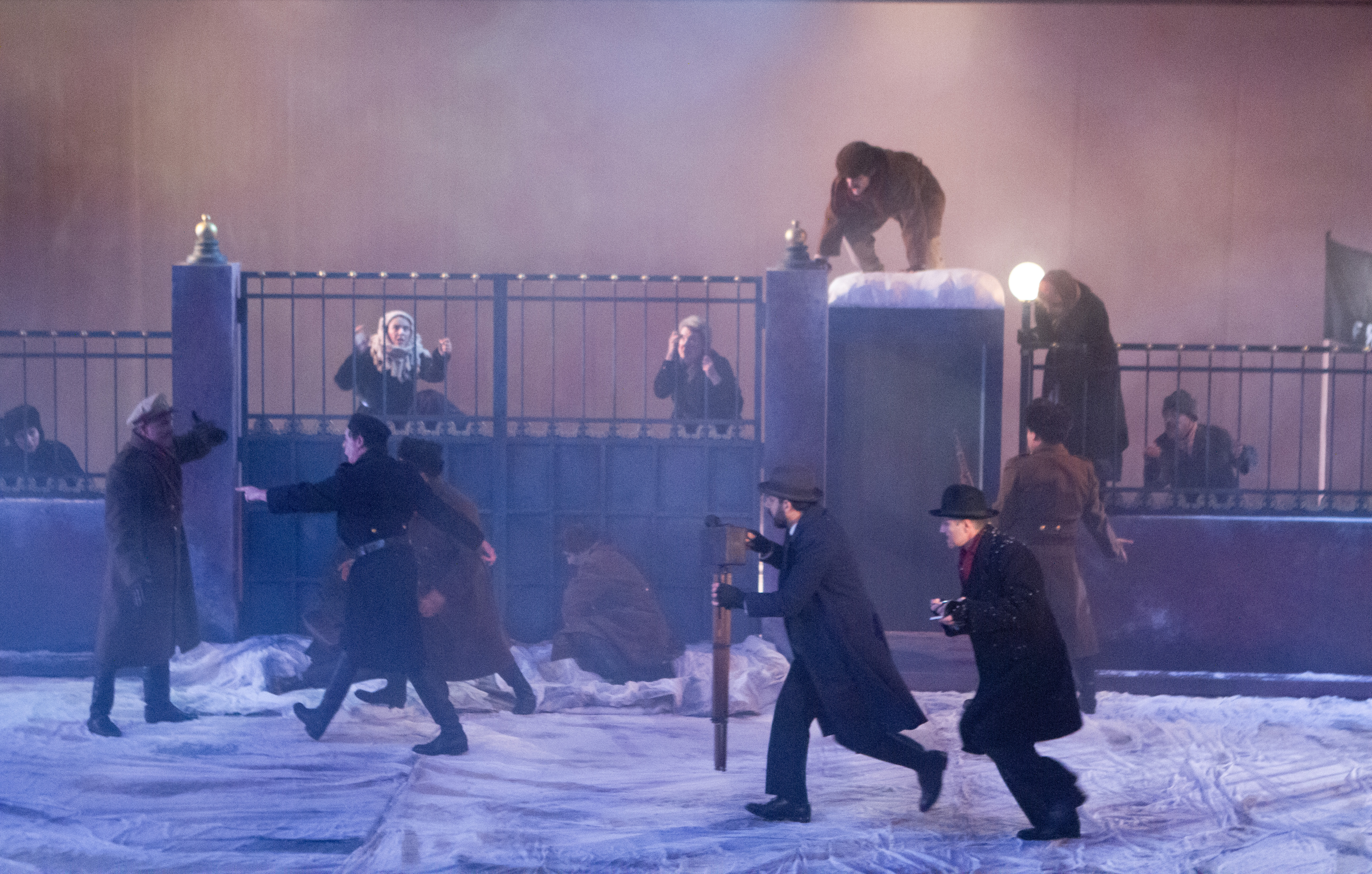 Comme toutes les créations du Théâtre du Soleil, Ici sont les dragons, dirigée par Ariane Mnouchkine en harmonie avec Hélène Cixous, est un grand spectacle inspiré par des faits réels, en plusieurs époques. 1917, la victoire était entre nos mains est la première de la lignée. Des pages de l’Histoire mondiale – pour expliquer l’origine de la guerre en Ukraine – passionnantes, instructives et (un peu trop) denses qui ne laissent pas toujours le temps au spectateur sans prérequis d’assimiler toutes les informations. Deux bémols : 1. la majorité des textes sont en russe et en allemand avec traduction simultanée sur écran ce qui peut détourner l’attention du spectateur de la scène. 2. Un peu plus de liant de la part de la « chercheuse » pour expliquer l’enchaînement des événements aurait été bienvenu.