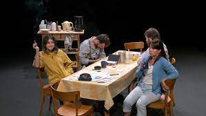 Aïla Navidi, autrice et metteuse en scène, s’est inspirée de son histoire familiale. Son écriture adopte un style cinématographique, sa mise en scène est fluide, défiant la notion d’espace-temps : de scène en scène, on passe d’un lieu à un épisode faisant fi du respect de la chronologie des faits. Ainsi les scènes se chevauchent-elles, un peu comme lorsqu’on raconte un souvenir et que les détails comme les personnages se bousculent dans notre esprit .