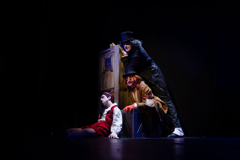 Peut-on rêver plus belle matière pour un metteur en scène ? Assurément non ! Tout y est : l’aventure, la peur, l’amour, le risque et le rôle de la conscience (avec la jolie complicité du public). Olivier Solivérès en tire une très jolie partition et signe un spectacle intelligent et ultra rythmé, animé par un casting à la fois très talentueux et homogène. A commencer par Jean-Baptiste Navarrete, très convaincant dans le rôle-titre, qui apporte toute l’espièglerie et l’émotion attendue au personnage de Pinocchio ainsi que Anthony Bechtatou, dans le rôle du grillon-narrateur, en mode quasi stand up. A leurs côtés, la reste de la troupe fait des merveilles, en totale complicité avec le public de têtes blondes. Ajoutez à cela, des décors et costumes particulièrement soignés, des séquences musicales qui font lever les bras et taper dans les mains, des effets visuels très réussis (engloutissement de Pinocchio dans le ventre de la baleine, sauvetage dans la mer,…) et vous passerez un délicieux moment 1 heure durant, très bel hommage au personnage légendaire de Collodi. Une valeur sûre pour les 5 -10 ans !