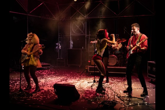 Tous les interprètes (Rachel Arditi, co-autrice, James Borniche, Salomé Dienis Meulien, Kim Verschueren) se donnent à fond, en live, faisant oublier le niveau musical parfois inégal. En revanche, ils maîtrisent très bien le chant, et font preuve d’une énergie communicative. Nous sommes emportés dans un tourbillon de morceaux connus ou moins connus, qui se succèdent à un rythme effréné. Des instants plus poétiques nous sont offerts à travers des arrangements plus soft, laissant la place à l’intimité et à la sensibilité des personnages. La scénographie, d’une sombre féérie, nous transporte dans un monde mi-onirique, mi-réaliste. Les auteures n’occultent pas des facettes plus sombres comme la drogue ou le viol, mais mettent en avant la capacité de résilience de ces héroïnes du quotidien.
