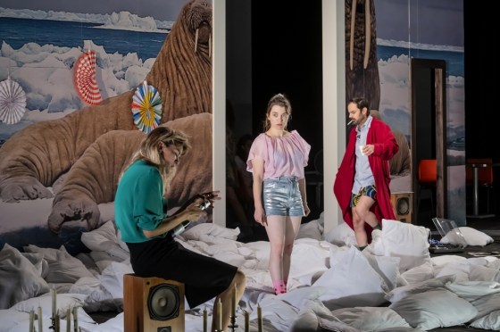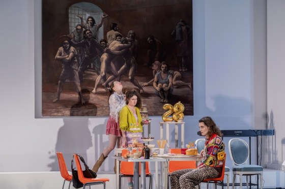 ♥♥ Le metteur en scène Marcial di Fonzo Bo adapte Dolorosa, la pièce de l’auteure allemande Rebekka Kricheldorf, nouvelle star du théâtre berlinois. Librement inspirée des Trois soeurs de Tchekhov, la pièce questionne les états d’âme d’une fratrie, Micha, Olga et Irina, au fil de trois anniversaires successifs de l’une d’elles. La pièce brosse en creux le portrait d’une génération désenchantée, mal à l’aise dans son époque, incapable d’apporter un sens à leur existence. Un spectacle ambitieux mais inégal.