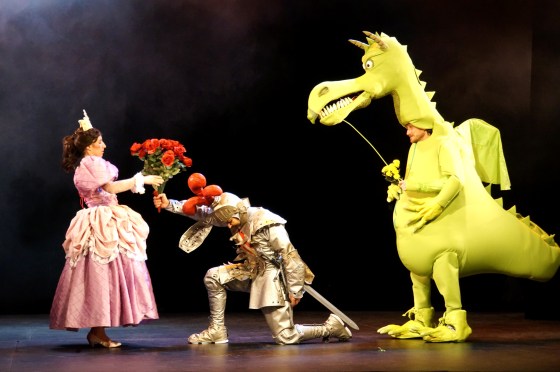 Après Le Chat Botté, Cendrillon et Le Loup est revenu !, Les Nomadesques, engagés depuis douze ans dans un théâtre résolument populaire et familial, proposent un spectacle énergique, réjouissant et très rythmé. Au-delà de l’intrigue fort drôle, les personnages bien campés (la princesse autoritaire, le dragon roublard et jaloux, le chevalier intrépide et fougueux) font le bonheur des petits spectateurs. Les scènes s’enchaînent sans temps mort au rythme des plus belles chansons de Joe Dassin qui feront fredonner les… parents ou grands-parents accompagnateurs ! Coup de chapeau aux costumes variés et originaux qui participent au charme du spectacle et au professionnalisme des trois comédiens, engagés à 100 % dans leur partition et ravis d’amuser petits et grands.