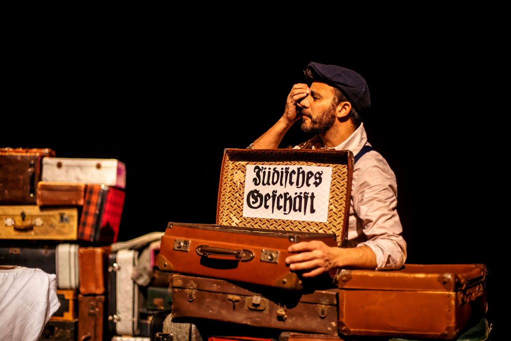 L’adaptation pour la scène de Freddy Viau du récit poignant de Joseph Joffo, Un sac de Billes, est un cri d’amour plein d’espoir et d’émoi. La mise en scène ciselée au rythme soutenu de Stéphane Daurat sur un fond de vieilles valises (qui deviendront tour-à-tour un compartiment de train, une grange, une cuisine, une salle d’interrogatoire…) sublime le texte par sa sobriété et son inventivité. Quant à James Groguelin, il interprète avec virtuosité tous les personnages (le père, la mère, les trois frères, le passeur, les gendarmes, les soldats SS… et Joseph). Avec lui, nous vivons les peurs, les joies, les espoirs et les insouciances d’un gosse de dix ans jeté dans la tourmente pour échapper à la folie des hommes. Tel un conteur, le public de tout âge écoute attentivement son récit haletant sans aucun décrochage tant son talent est époustouflant de vérité, saisissant d’intensité. Le tout est bouleversant même pour tous ceux qui ont lu l’ouvrage original et/ou visionné le film.