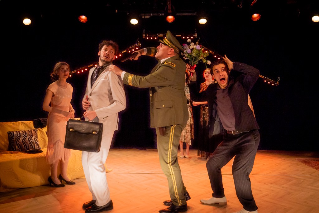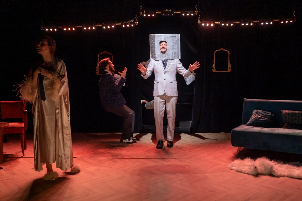 C’est dans ce contexte que vont s’enchaîner quiproquos en cascade et péripéties plus drôles les uns que les autres. Comme souvent chez Feydeau, les personnages sont inspirés de la vie réelle, mais deviennent ridicules par le comique des situations. La mise en scène inventive de Philippe Person et de Florence Le Corre réussit à maintenir la tension de bout en bout. Elle laisse le spectateur pantelant, comme suspendu au jeu virevoltant des acteurs. Quelques gags plus décalés viennent s’intercaler entre les scènes, dans un esprit volontairement « cartoon » : mimiques exagérées, course sur place, etc. Quant aux jeunes comédiens, formés à l’école du Lucernaire, ils sont tous impeccables, et apportent leur fougue et leur fraîcheur à la mécanique implacable de Feydeau.