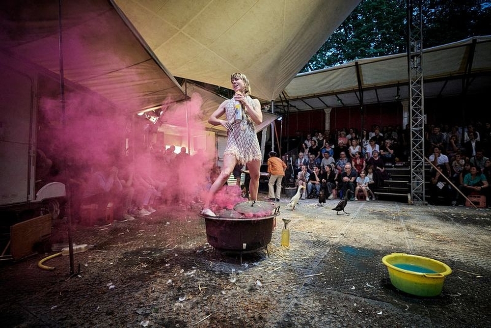 Le cirque Aïtal a été fondé il y a plus de vingt ans par un couple de circassiens franco-finlandais : Victor Cathala et Kati Pikkarainen. Ils se rencontrés au Centre national des arts du cirque de Châlons-en-Champagne et n’ont cessé depuis de proposer des spectacles itinérants, dans la tradition du monde forain, qui tiennent presque plus de l’artisanat que de l’art. Ce soir, dans les jardins du théâtre du Rond-Point, à deux pas des Champs-Elysées, mais à des années-lumière du glam et des enseignes de luxe – et le contraste n’en est que plus savoureux (!) –, la troupe est venue poser chapiteau et gradins pour nous plonger dans son univers bien à elle. D’emblée, le décor « dedans/dehors » surprend et séduit : une piste ronde avec son gros chaudron, un grand chapiteau à ciel ouvert, protégé par une toile qui laisse voir les étoiles, des caravanes et roulottes de fortune qui ont pas mal de kilomètres au compteur et qui serviront de gradins pour quelques spectateurs intrépides. Le ton est donné : saltimbanque, singulier et totalement libre !