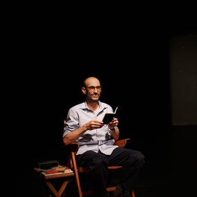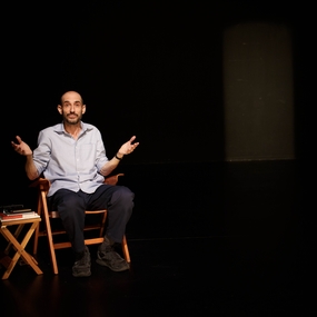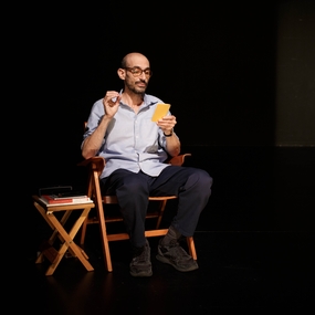 Dans une mise en scène épurée d’Olivier Veillon, Éric Feldman (auteur et interprète), enfant issu d’une famille brisée par la Shoah, déploie un récit intime autour de la grande Histoire, la psychanalyse, le yoga, le miracle d’être vivant… avec humour, émotion et gravité. Il évoque les effets traumatiques de la Shoah sur les rescapés, les enfants cachés survivants et leurs propres enfants (particulièrement sur lui). Adolf Hitler a assassiné six millions de juifs européens dont plus d’un million d’enfants, tout un peuple avec ses traditions, ses arts, sa culture et sa langue (yiddish). Six millions. Sans compter les enfants qui auraient pu naître de ces enfants comme des adultes en âge d’être parents morts dans les camps. Sans oublier les traumatisés de la Shoah : ses oncles et tantes paternels ont volontairement refusé de devenir parents, comme lui-même, comme beaucoup.