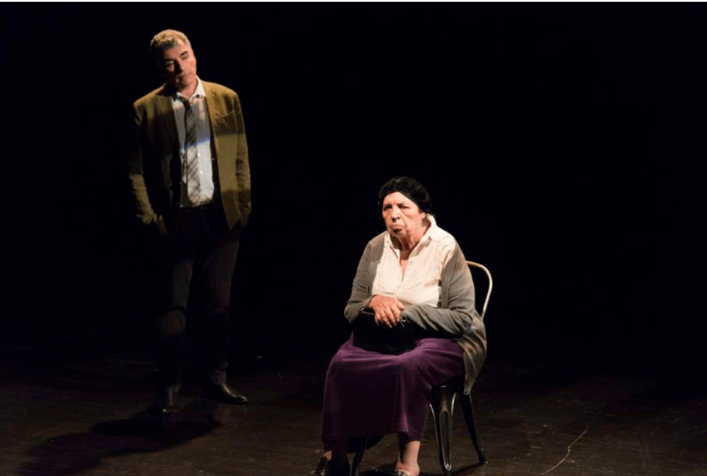 Une vieille femme en garde à vue. Un capitaine de police mène l’interrogatoire. Des meurtres en série. Des aveux déconcertants. Des répliques désopilantes. Le jeu est souvent percutant, parfois hésitant. À partir du quatrième cadavre dépecé, on commence à espérer un rebondissement, une cassure de rythme, même si le tout est truffé d’un humour noir franchement cocasse. Mais non, on aura droit aux détails de trois nouveaux assassinats.