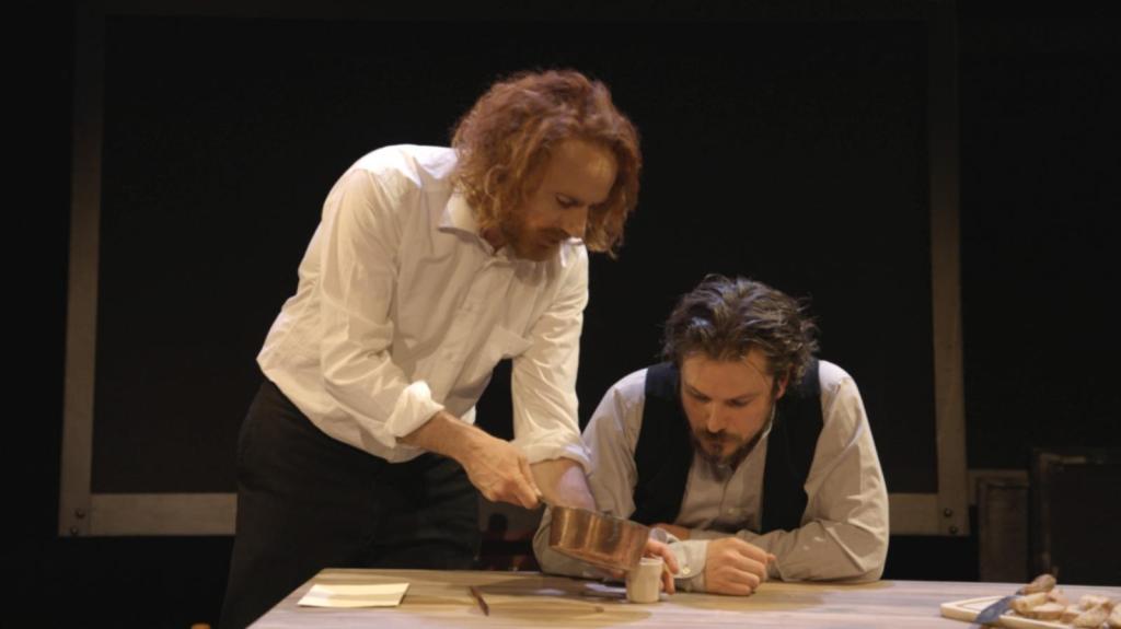Le face-à-face entre les deux peintres interprété par William Mesguich (Van Gogh) et Alexandre Cattez (Gauguin) est éblouissant de talent et de sincérité. La vive tension émotionnelle entre les deux hommes monte crescendo au fil des scènes pour atteindre une incroyable intensité qui s’achèvera par le geste fatal. Les mots de Cliff Paillé sont fougueux comme les personnalités décrites sont justes, l’un est nerveux et dépressif, l’autre est jouisseur et confiant en son avenir. La mise en scène de Cliff Paillé et Noémie Alzieu orchestre à merveille la dégradation inéluctable de leur relation et annonce la fin tragique de l’artiste maudit.
