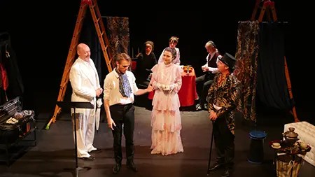 Intéressée par découvrir cette œuvre de Zangwill où il loue les États-Unis, terre d’accueil fraternelle de tous les immigrants du monde et où il s’oppose à l’antisémitisme, séduite par la lecture du dossier de presse, je m’attendais à un joli moment de théâtre. Quelle ne fut pas ma déception ! La scénographie s’encombre d’éléments de décor superflus, les passages musicaux ou dansés sont trop fugaces pour les apprécier,les scènes de fêtes (Shabbat, Pourim) font défaut côté liesse, le jeu des comédien-ne-s manque de rythme et d’assurance. Les costumes sauvent la mise. Un brin d’émotion et d’humanité survole l’ensemble. Pâle Melting-Pot.