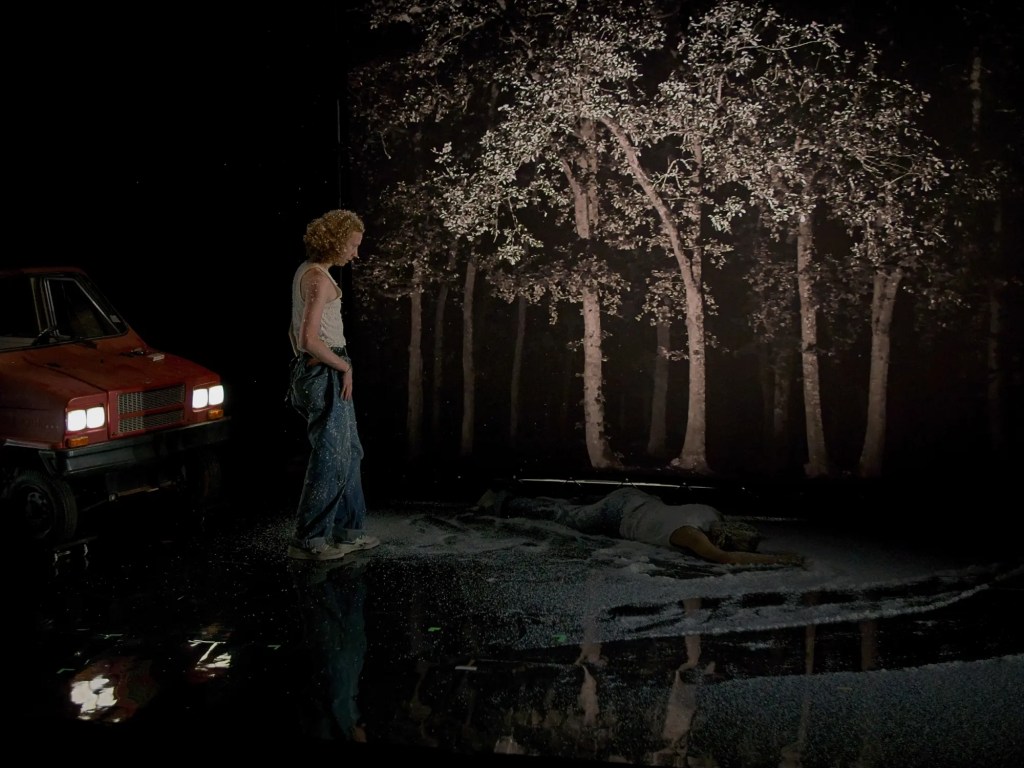 Le décor nous plonge d’emblée dans une atmosphère presque surréaliste, à mi-chemin entre rêve et réalité, comme dans les tableaux d’Edward Hopper. À proximité d’une forêt d’une beauté inquiétante, métaphore du monde extérieur, un junkie s’injecte sa dose. C’est l’amorce d’une série de scènes qui nous entraîne dans le quotidien de femmes et d’hommes écrasés par la pauvreté et la dureté de leur existence. Isolés dans leurs maisons, ils paraissent comme coupés du reste du monde. Même les néons et les couleurs criardes – symboles du capitalisme américain – peinent à insuffler un semblant de vitalité à cet univers dépourvu d’éclat. Les objets (téléphone, réfrigérateur, meubles…) semblent flotter dans l’obscurité, accentuant l’impression d’étrangeté.