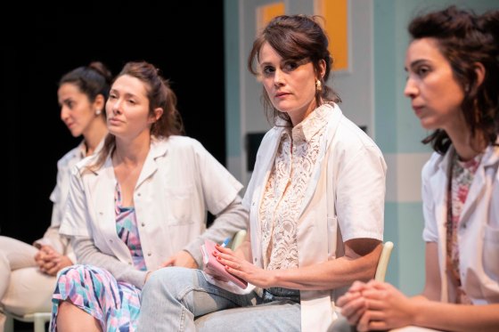 ♥♥♥♥ Où commence le théâtre, où finit la thérapie ? Cette frontière trouble, Lisa Guez en fait le cœur battant de son nouveau spectacle en s’emparant du psychodrame thérapeutique – ce dispositif où l’on rejoue ses traumatismes pour s’en libérer. Comme au théâtre, les patientes incarnent des personnages ou même des objets, mais l’enjeu diffère radicalement : ici, jouer, c’est guérir. La metteuse en scène des Femmes de Barbe-Bleue, déjà chroniqué ici, poursuit son exploration des psychés féminines à travers quatre cas réunis dans un centre psychiatrique : une psychotique, une « femme-serpent » qui vit mal sa maternité, une érotomane et une agressive. Nous allons suivre l’élaboration de leur psychodrame avec leurs soignantes – meneuse de séance et thérapeutes – à travers des jeux de rôles qui brouillent peu à peu les frontières entre cure et fiction.