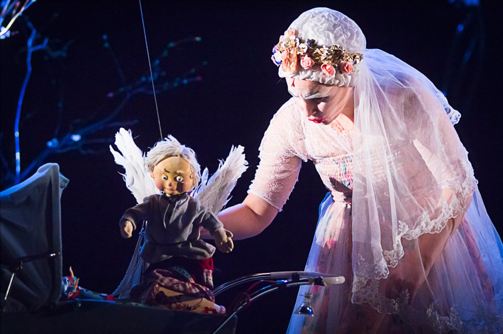 Accompagnée musicalement par Tim Fromont Placenti (dont la musique aux sons enfantins et aux vibrations techno joue un rôle essentiel dans le déroulé du récit), la comédienne-marionnettiste Amélie Roman donne vie à une multitude de personnages dans un décor onirique de contes de fées pour raconter son amour incommensurable pour son enfant au milieu des personnages-marionnettes de Julien Aillet : son papy qui fume la pipe, sa grand-mère qui est au ciel, les enfants sauvages, le loup qui guette peut-être au coin des bois, la« déesse-mère-de-toutes-les-mères », les petites filles modèles…