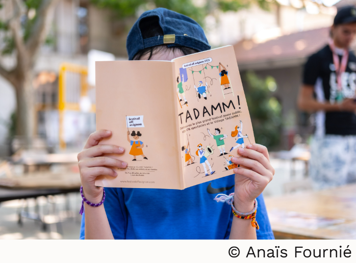 Pour les familles et leurs enfants, une visite au Village TADAMM s’impose (École Simone Veil – ancien lieu d’accueil du Village du Off – 1 rue des Écoles – du 6 au 25 juillet de 10 à 18h – fermé les jeudis). Au programme : ateliers de médiation et de pratique artistique, présentations d’extraits de spectacles, espace de convivialité, une librairie, un bar et sa petite restauration, des coins de détente, de repos et de jeux. Une véritable oasis dédiée à l’enfance et à la jeunesse en plein cœur du festival !