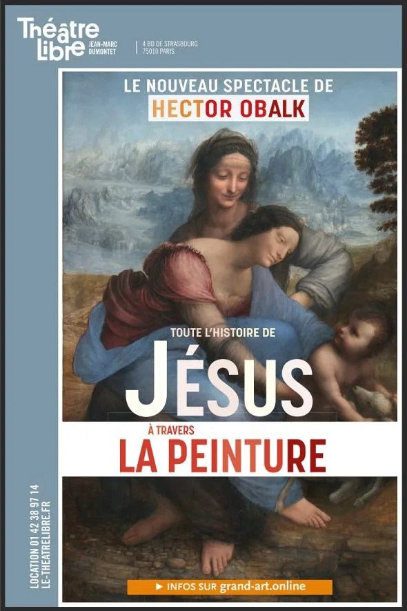 Ce nouveau spectacle-conférence est entièrement axé sur la vie de Jésus, sachant que plus d’un tiers de l’histoire de l’art concerne des sujets chrétiens. On y repérera les indices permettant de distinguer une Adoration des bergers d’une Adoration des mages, une Résurrection d’une Ascension, la circoncision de Jésus à sa présentation au Temple… Hector Obalk compare avec humour et érudition le style de chaque peintre, de Giotto à Fragonard en passant par Rembrandt, Velasquez et bien d’autres, tout le long de cinq siècles d’histoire de la peinture.
