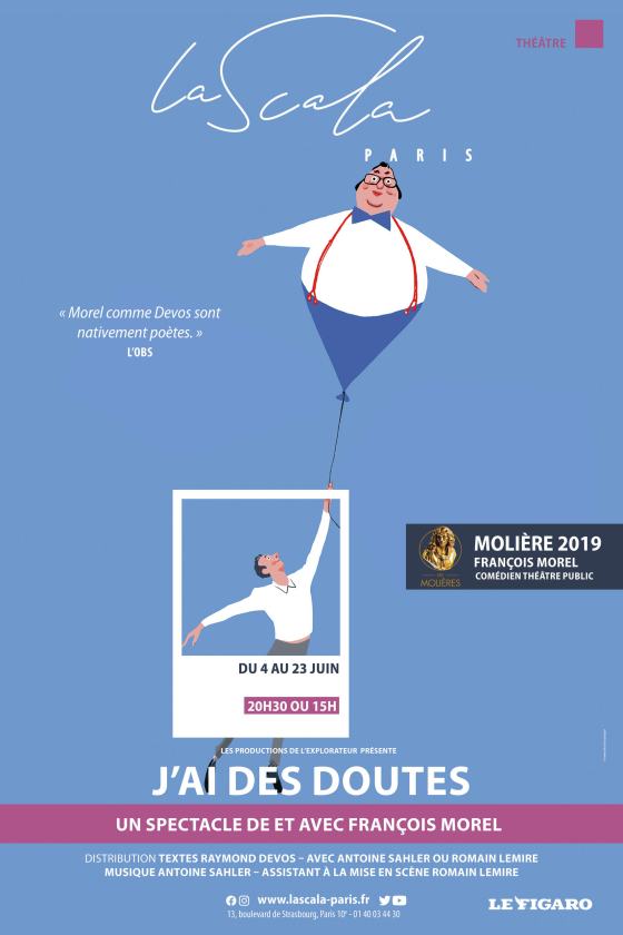 ♥♥♥Le ciel tonne, des éclairs strient l’obscurité de la salle et voilà François Morel qui apparaît par magie, tout de noir vêtu et sous les traits facétieux d’un archange (?), qui vient nous rapporter un dialogue entre Dieu et saint Pierre. Le premier est très fâché contre Raymond Devos, ce génie du calembour qui prétend réinventer le monde à sa manière, et demande au deuxième de le convoquer sur-le-champ. Mais, comme tente (en vain) de lui expliquer saint Pierre, personne ne convoque Devos… même le plus illustre des créateurs !